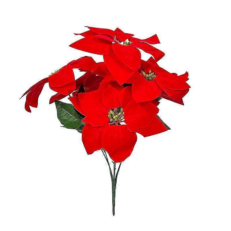 Artificial Red Poinsettia Christmas Flowers with Christmas Red Berries and Leaves for Christmas Tree Christmas Wreath Home Decoration