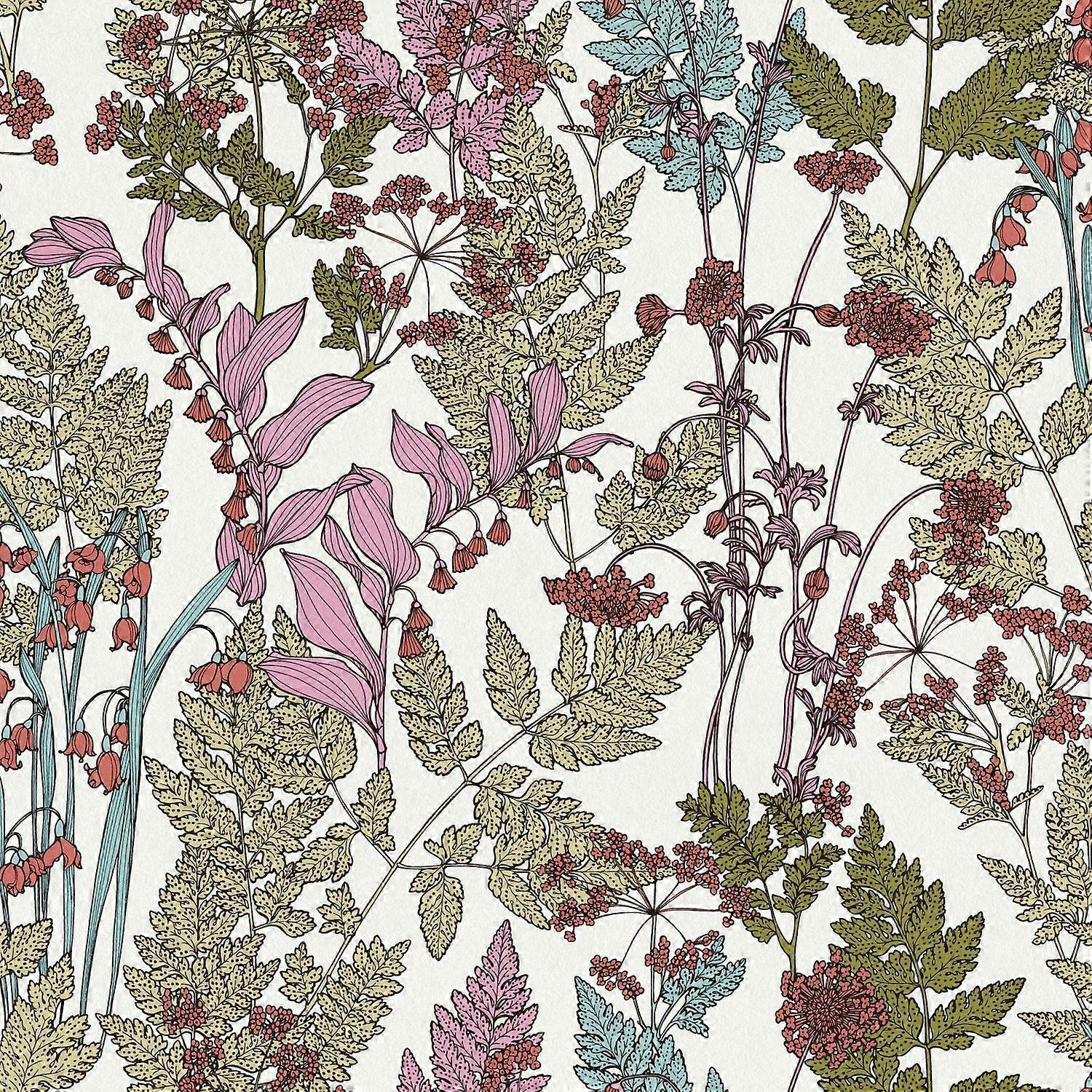 Papier peint floral Profhome 377513-GU papier peint intissé lisse avec un dessin floral mat crème vert bleu rose 5,33 m2