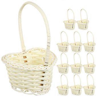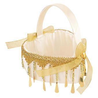 Cesta pequena de vime para daminha de honra com alça de pérolas para decoração de casamento.