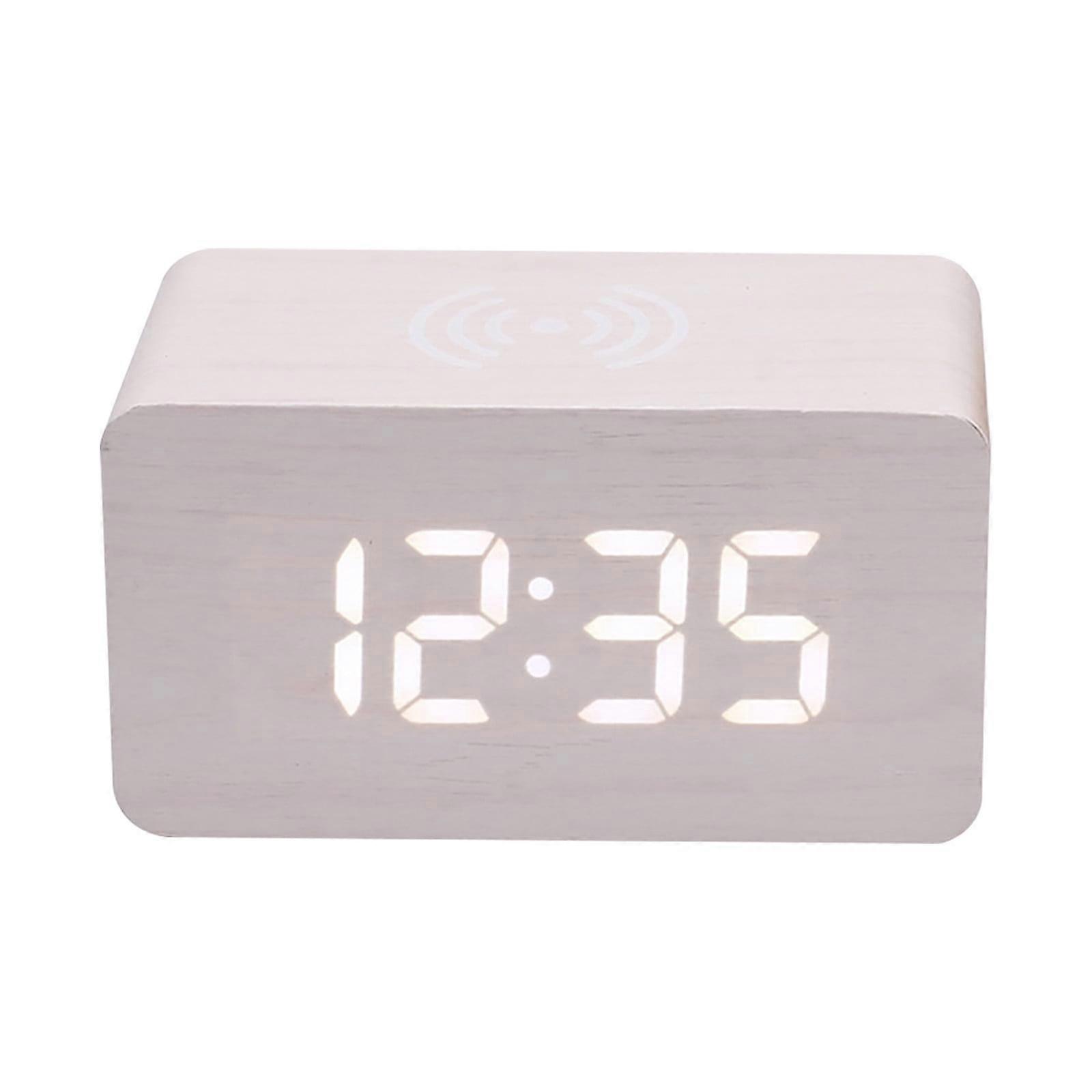Fnyoxu Nightlight Wireless Charging LED Wooden Alarm Clock, Multifunctional Voice Controlled Mute Electronic Clock, Wireless Charging Clock