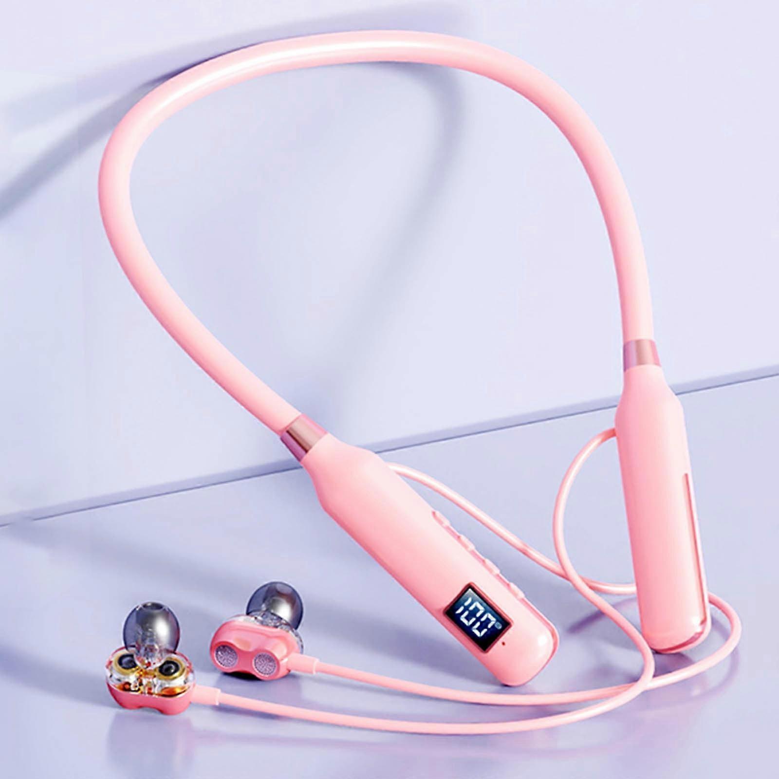 Sport Neckband Headset Bluetooth5.0 Wireless Headphones LED Digital Display Hanging Neckband Sport Headset Noise Cancelling, Bluetooth Headset