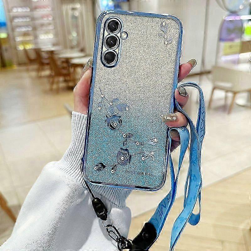 For Galaxy A17 5G Case, Flower Pattern TPU Gradient Phone Cover with Lanyards