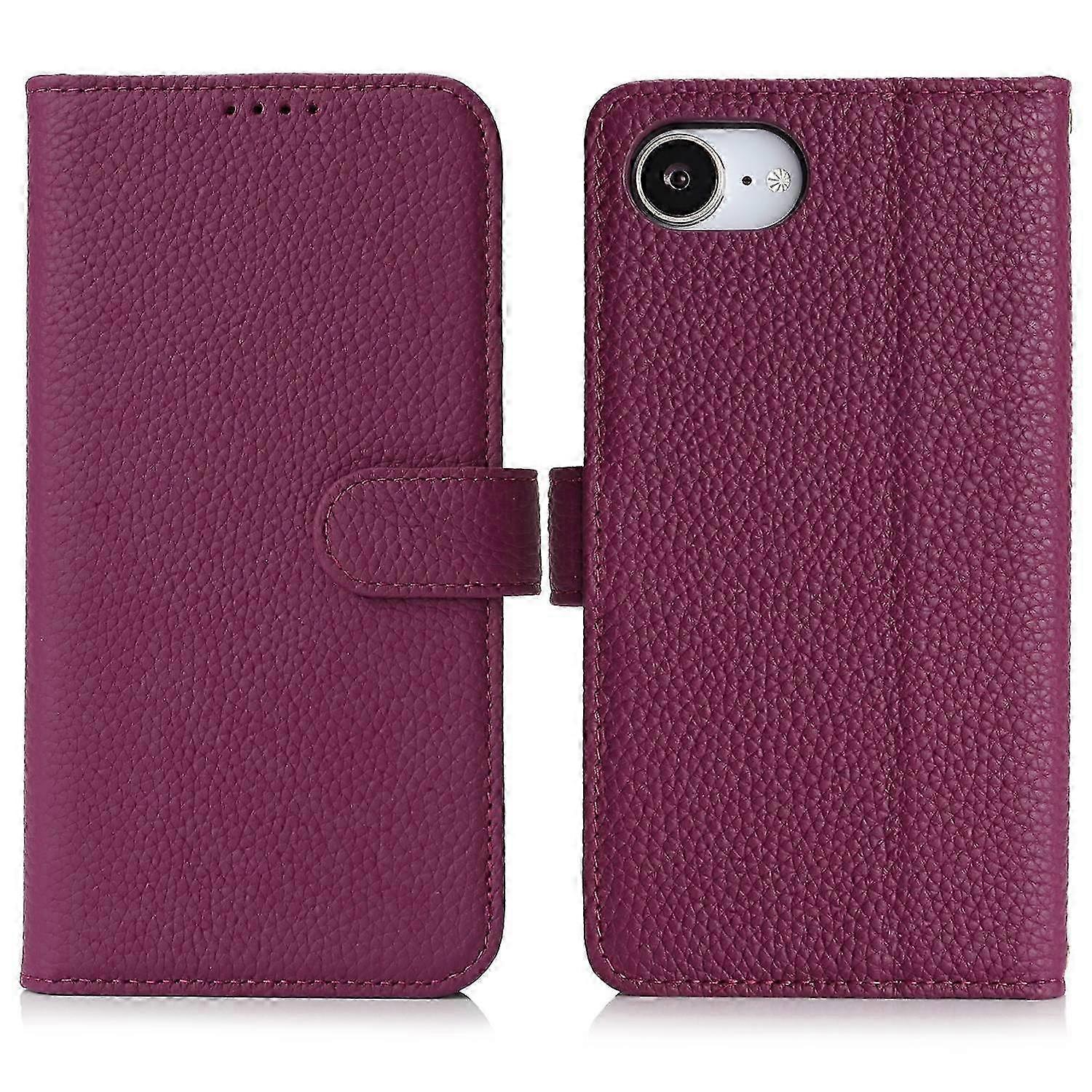 For Iphone 16e Stand Case Litchi Texture Genuine Cow Leather Wallet Phone Cover Rfid Blocking - Viol