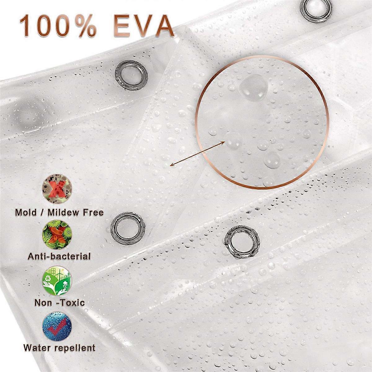 Clear EVA Shower Curtain Liner Waterproof 3D 71inch x79inch, 12 Hooks