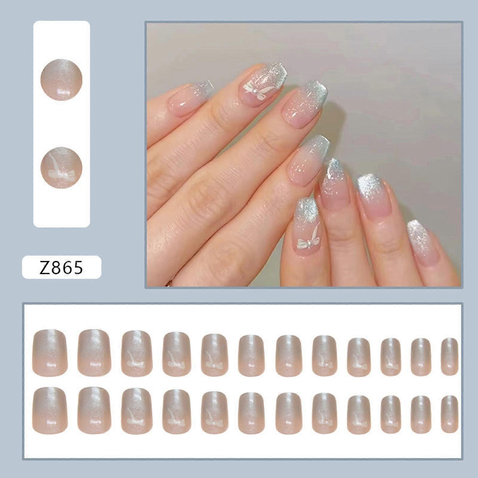 Fragmented Wearing Nail Panel Long Nail Gradient French Nail Patch Diamond False Nail 24 1ml Cosmetic Sets FLY5266