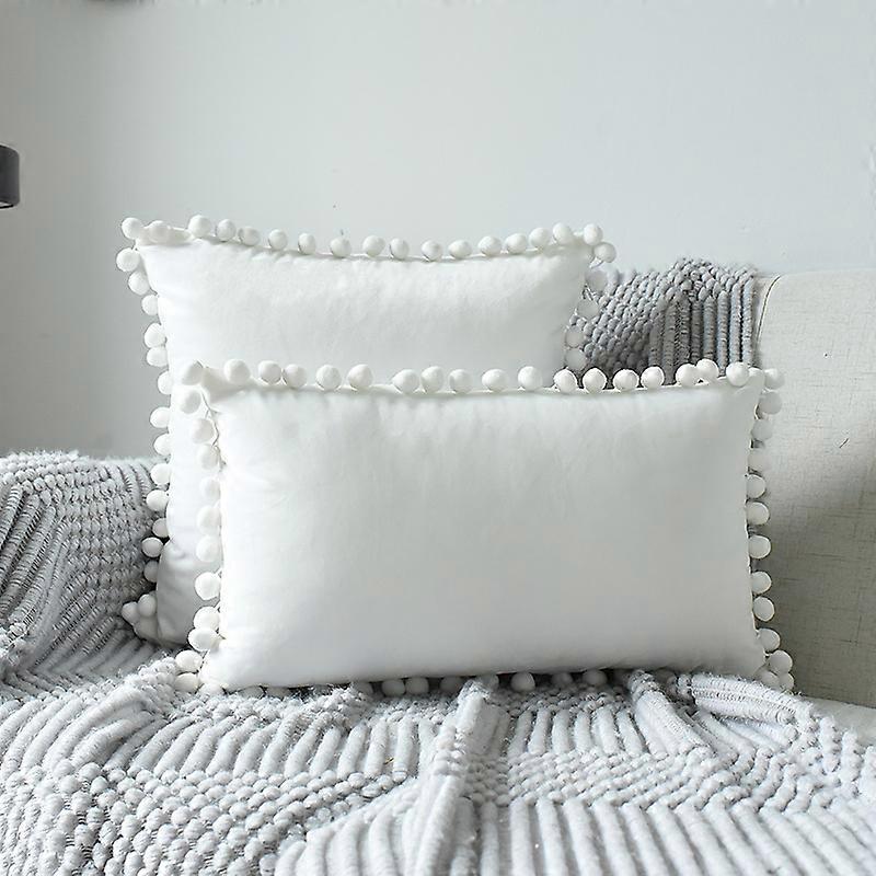 Pillowcases "Set of 2 Velvet Pillowcase with Pompoms Decorative Pillowcase"