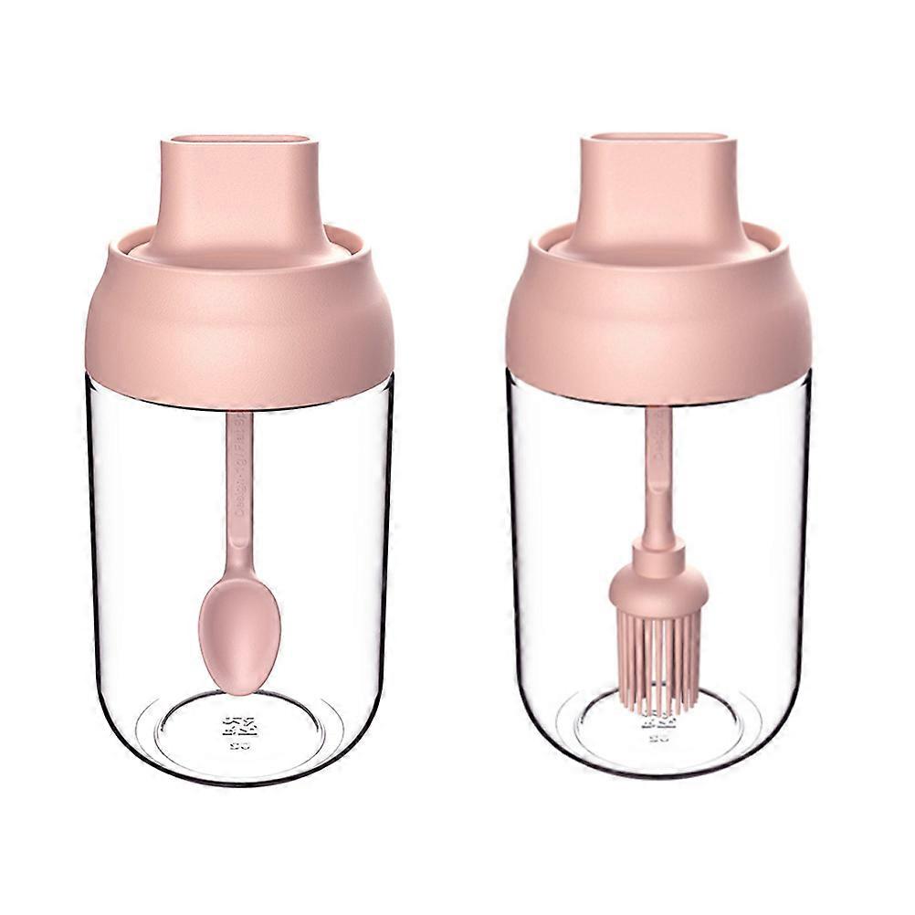 Multifunctional Flavoring Jar Glass Seasoning Bottle with Lid Pink