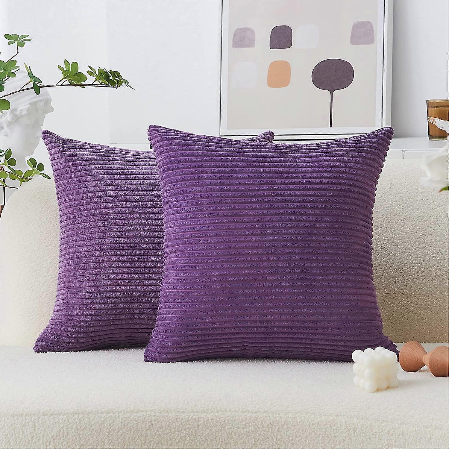Pillowcases nordic solid color corduroy vertical stripes pillow cover soft without core,Purple,2 PCS