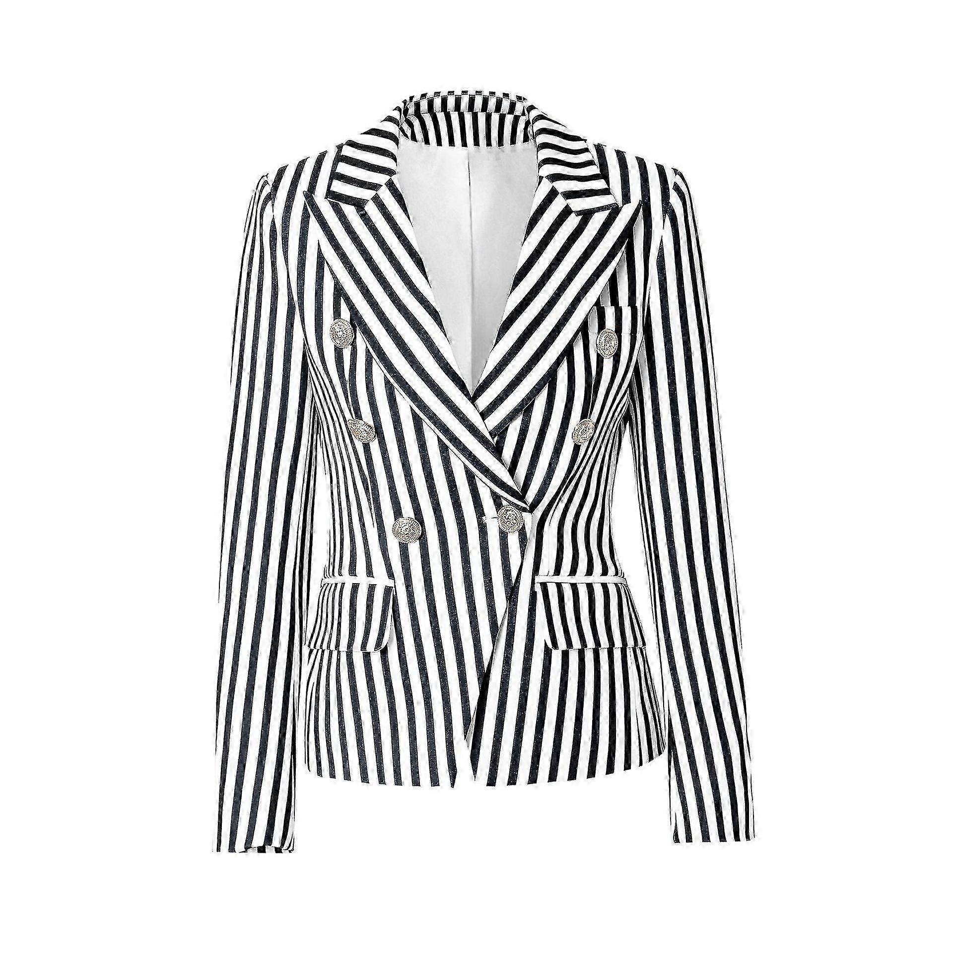 (Free shipping)Street-wear Striped Printed Suit Jacket Double Breasted Notched Lapel Slim Fit Blazer Jacket
