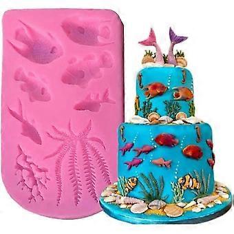Underwater Cake Decor Mold with Fish Seashell Coral for Fondant