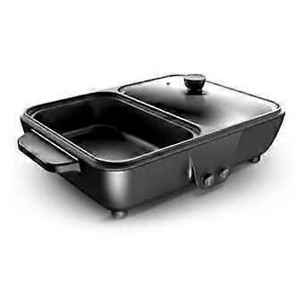 Household & Travel 2 in 1 Non-Stick Cooking Frying Pan Dual Use Electric Bbq Grill with Hot Pot EU Plug Black JN