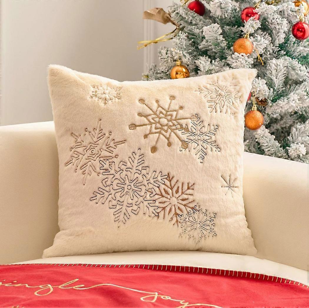 Snowflake 45*45cm (excluding filling) Stylish and simple Christmas solid color embroidered plush pillowcase for bedside, living room, and sofa.