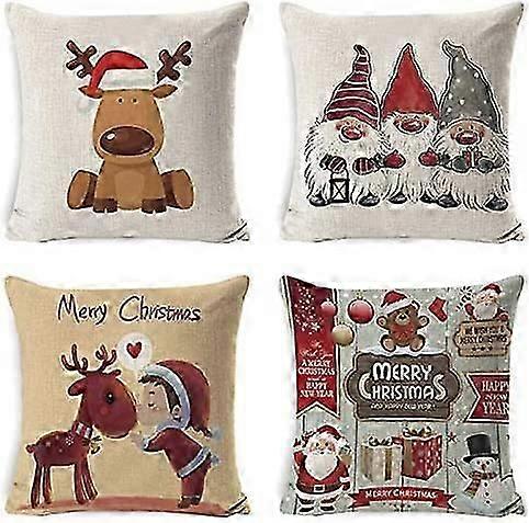 4pcs Pillowcase Christmas Santa Claus Sofa Pillowcase Square Pillowcase Christmas Decorati