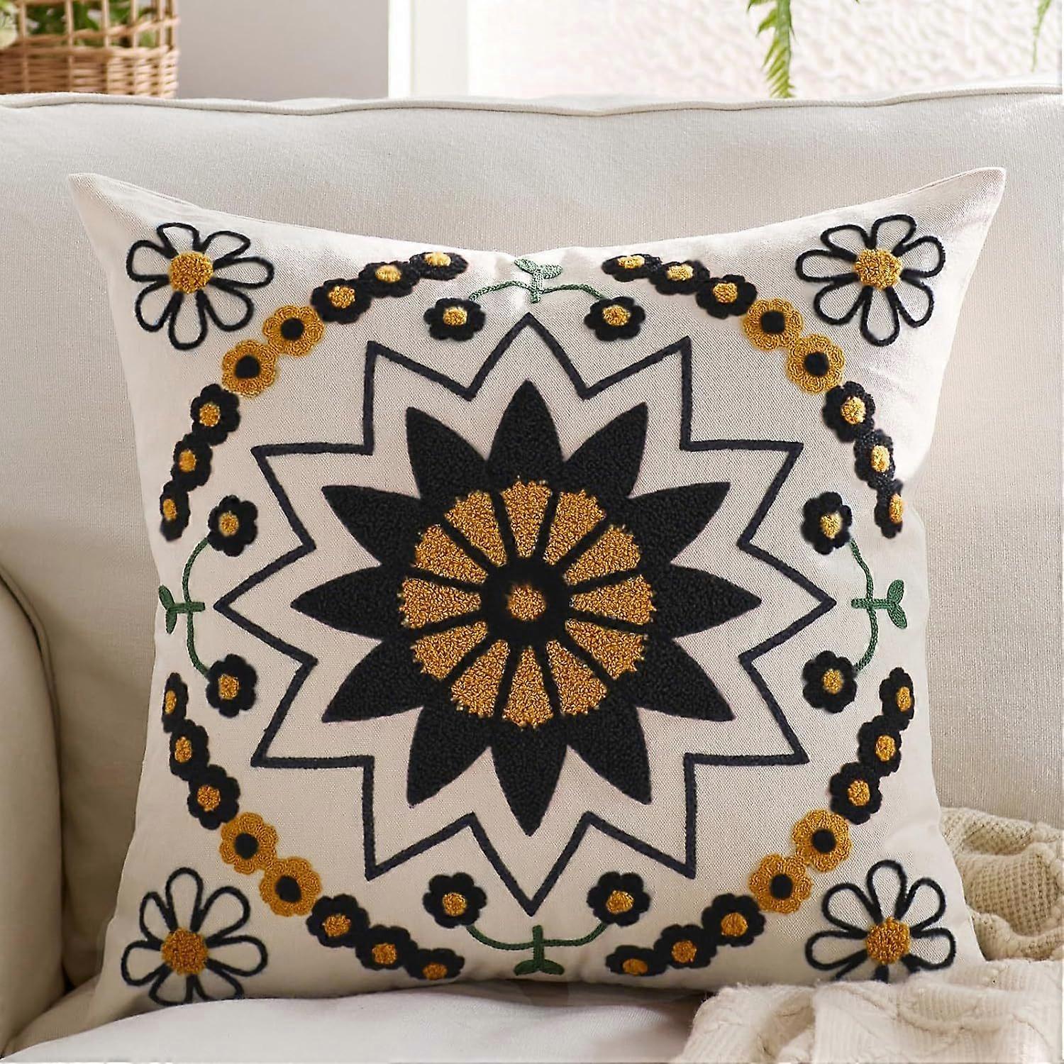 Black and orange 45*45cm Bohemian style embroidered floral towel pillowcase, simple decorative cushion cover, bay window daisy pillow.