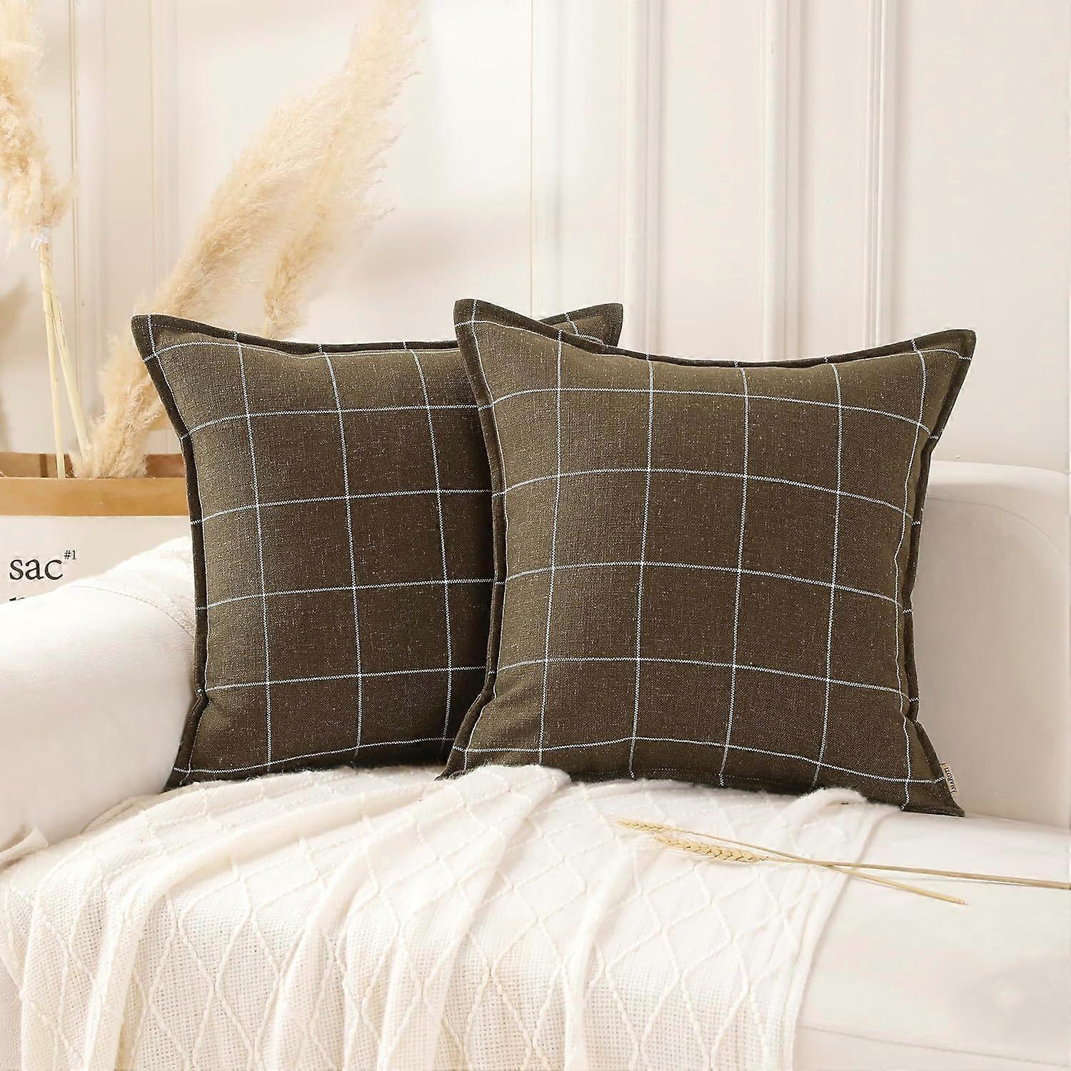 Coffee-colored 30*50cm Nordic style minimalist throw pillowcase, striped and plaid pattern, bedside throw pillow and cushion cover.