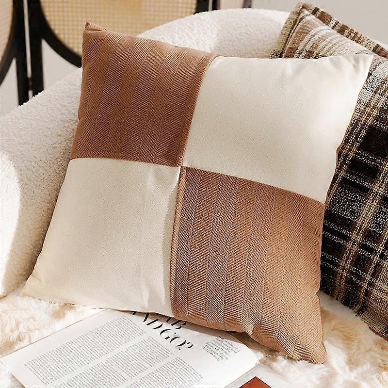 Brown herringbone off-white checkerboard pattern square 45x45cm individual pillowcase, French retro style throw pillowcase, brown series