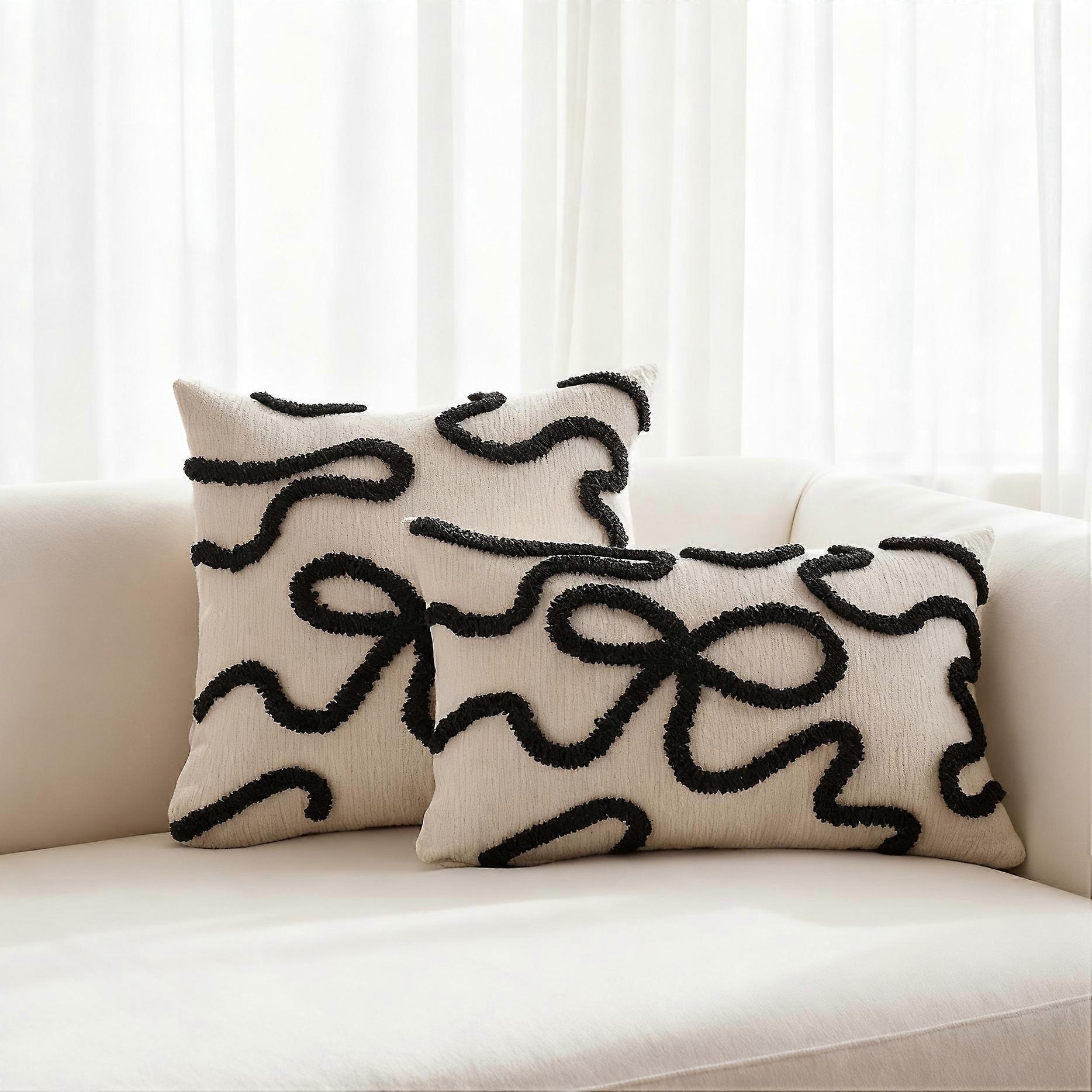 Black - Bowknot 30*50cm Retro Nordic Style Floral Bowknot Pillowcase for Bedside, Living Room, Sofa, and Backrest Covers