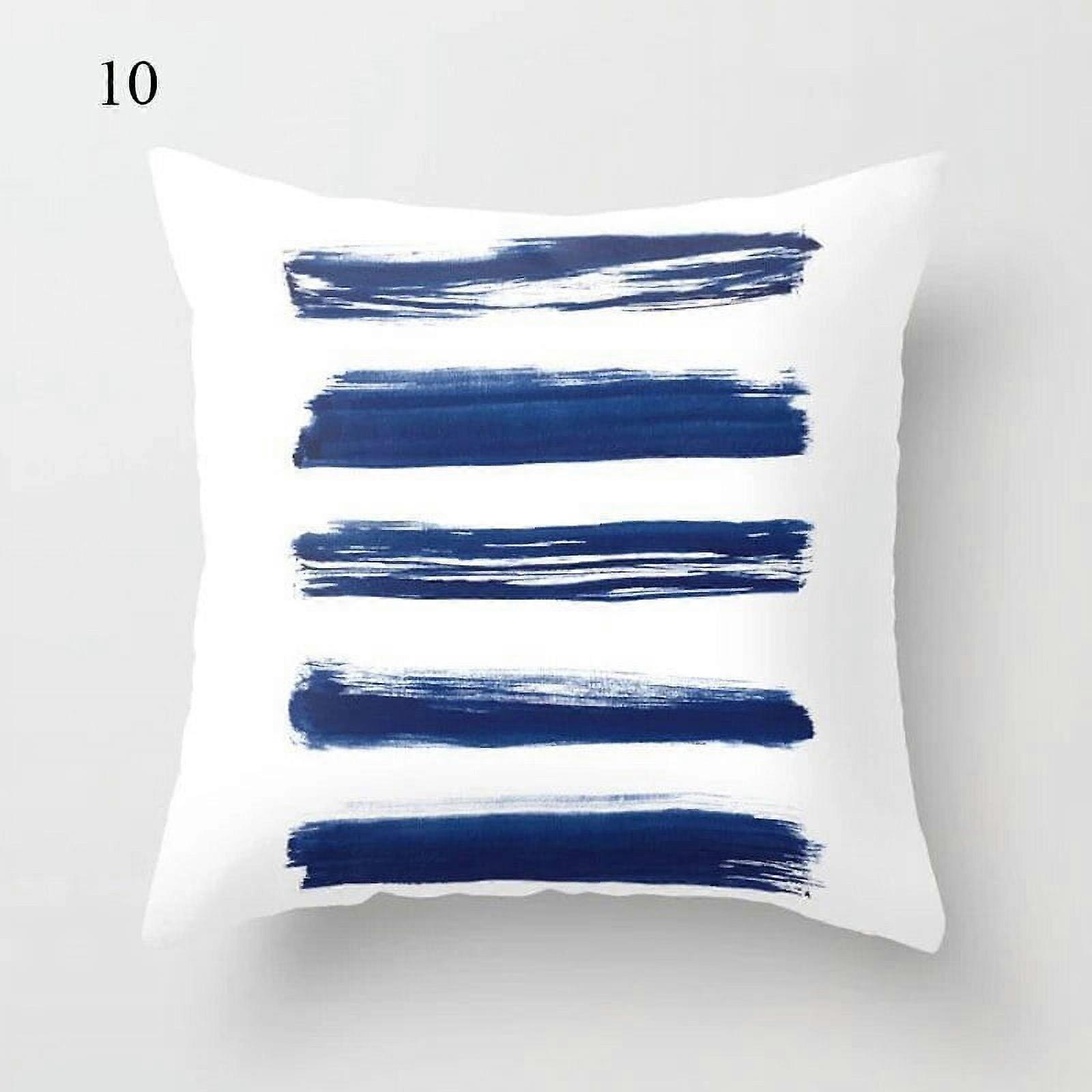 Pillow Cases Cotton Linen Marble Geometric Small Fresh Blue Sofa Cushion Cover Modern Decor Pillowcase Home