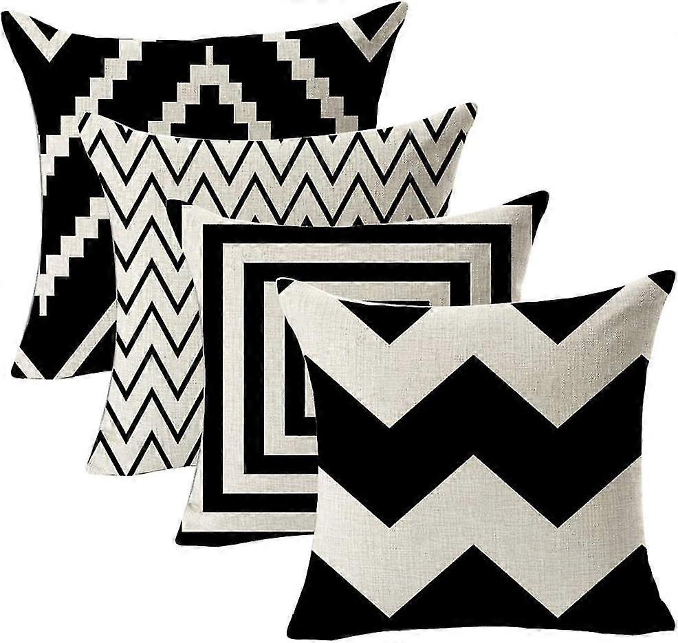 Geometric Pillowcases, Linen Pillowcases, Square Short Pillowcases, Black And White Geometric Pillowcases, Bedroom, Sofa 4pcs (ymd118 - 1, Ymd118 - 2,