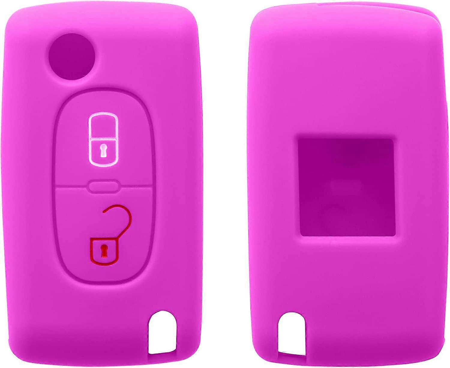 Fuchsia Car Key Accessory Compatible with Peugeot Citroen 2-Button Car Key - Soft Silicone Car Key Case
