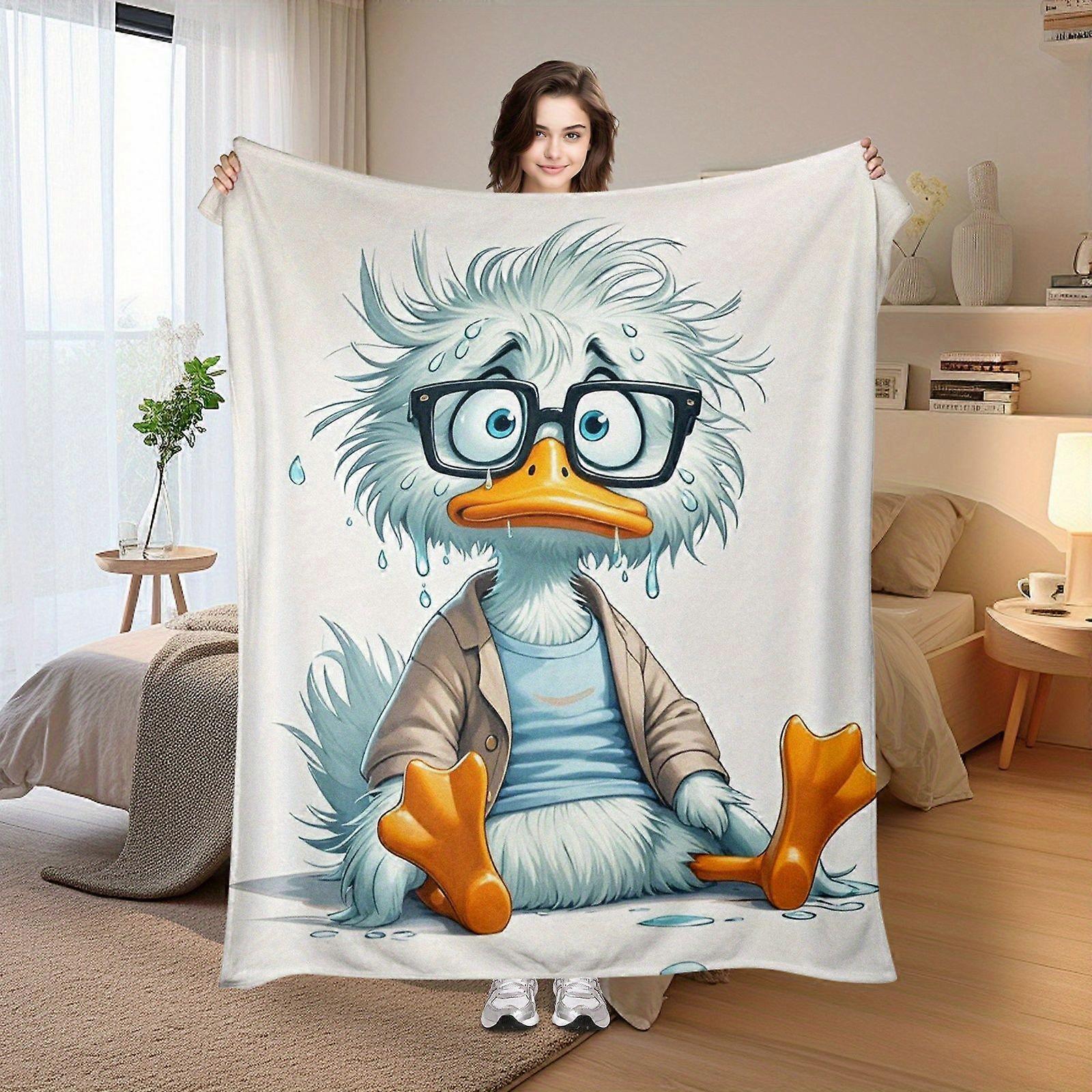 Funny Sweaty Duck Blanket with Glasses & Formal Attire Design - Ultra-Soft 280gsm Flannel Throw, Anti-Pilling Machine Wa-qazxc323