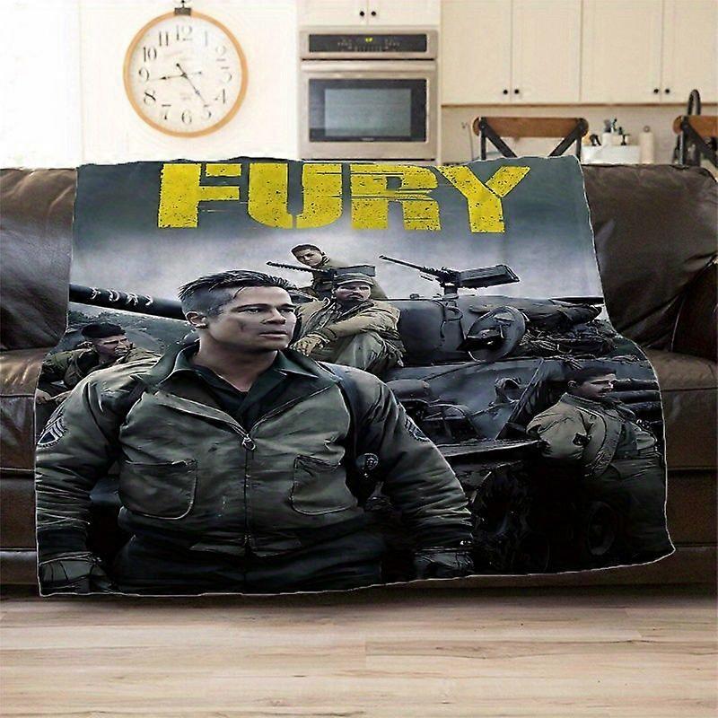Fury Movie Print Flannel Blanket - Cozy, Lightweight Polyester Throw with Military Tank Design, Ideal for Bed, Sofa, Cam-WSDCV223