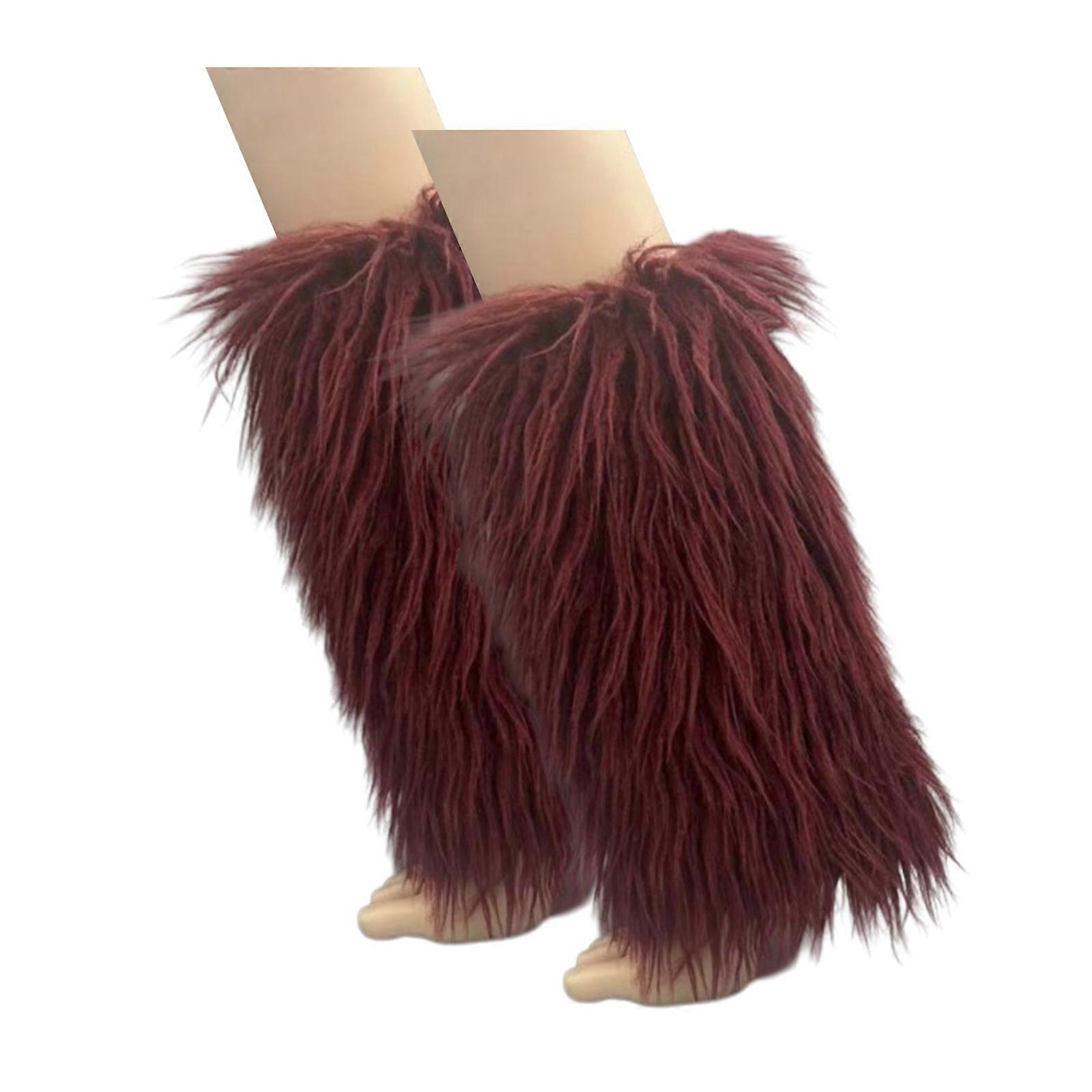 Fuzzy Faux Furs Leg Warmers Furs Heels Long Boots Cuffs Cover Has Elastic One Pair Carnivals Boot Cover Y2K JK Uniform Claret 40