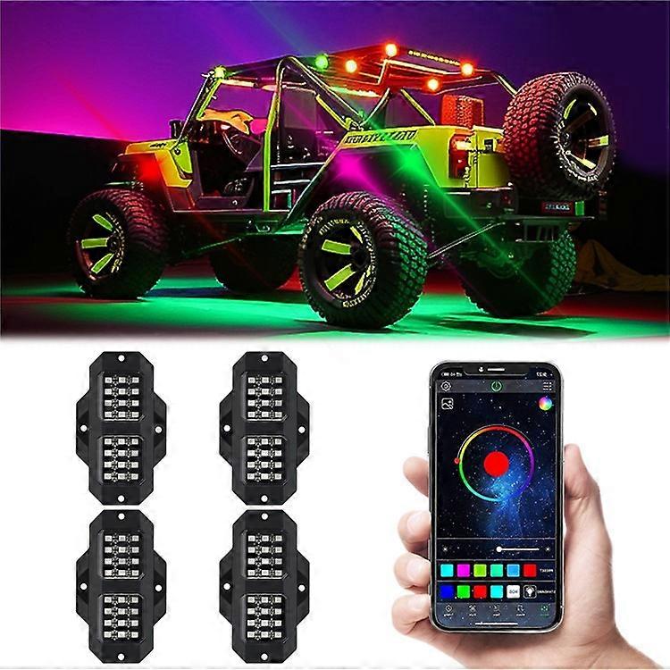 G1 4 In 1 RGB Car Underglow Light Music Sync Bluetooth-Compatible LED Rock Light Kit for SUV Truck