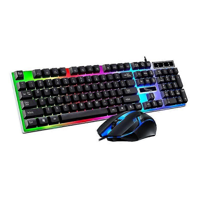 G21b Usb Wired Keyboard Mouse Set Rainbow-color Backlight For Laptop Computer Pc