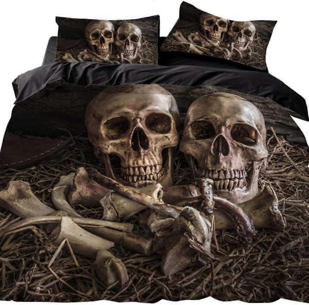 G497 Skull Bedding Set, Microfibre Gothic Duvet Cover Set Teenagers, Halloween Skull Bed Linen Children with Zip Pillowcase H497