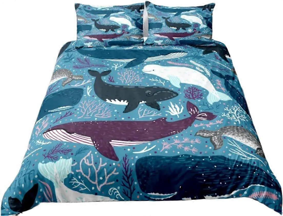 G561 Blue Whale Pattern Bed Linen, Children's Teenagers Favourite Blue Ocean Animal Cover, 3-Piece Set with Pillowcase, Home Textile Micro Fibre Bed L