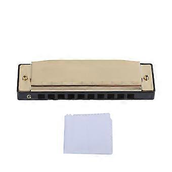 Gaita de boca com 10 furos e 20 tons, tocador de gaita de boca, instrumento musical de sopro com caixa de tecido dourado