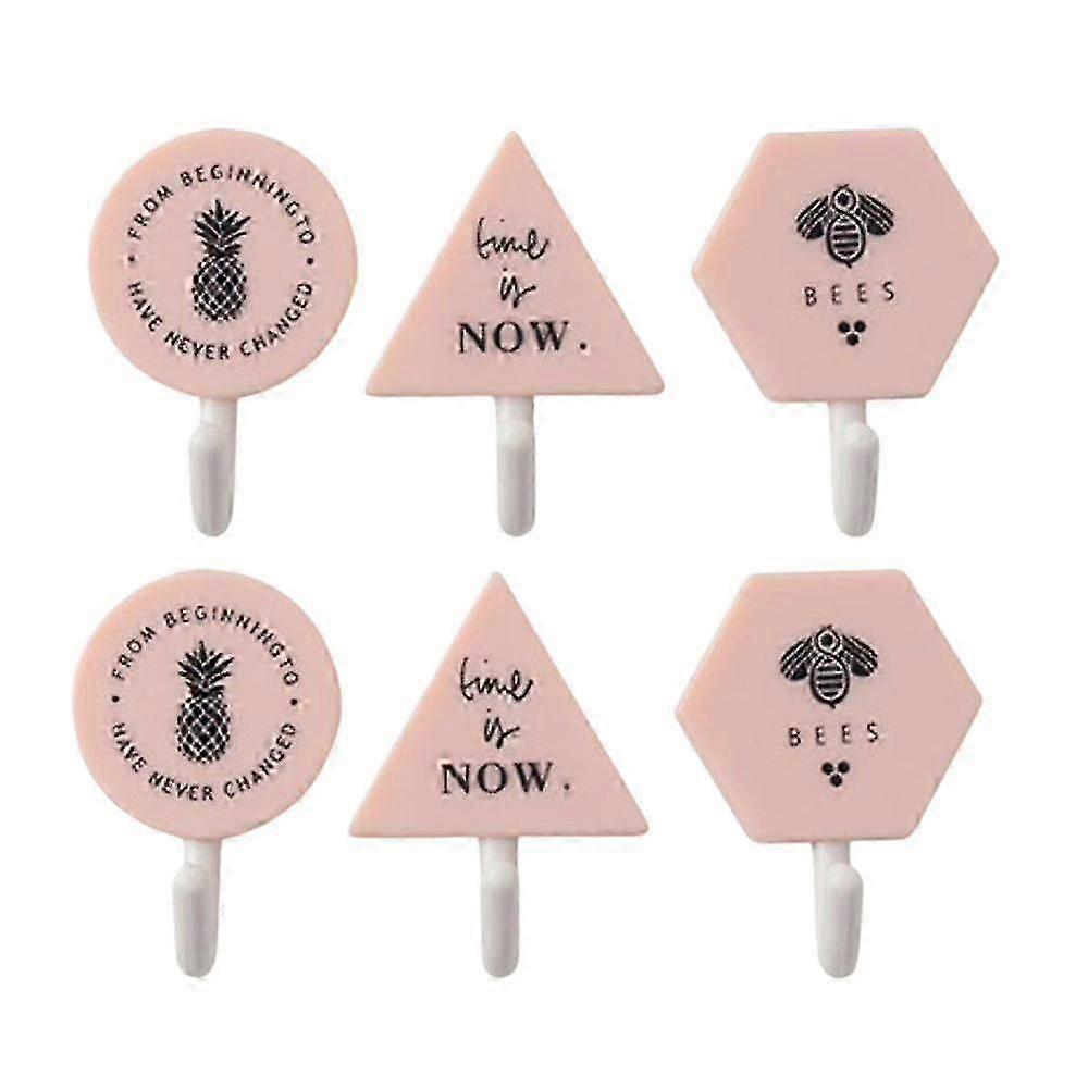 Self Adhesive Hooks Geometric Hanger Set No Punch Multicolor Pink