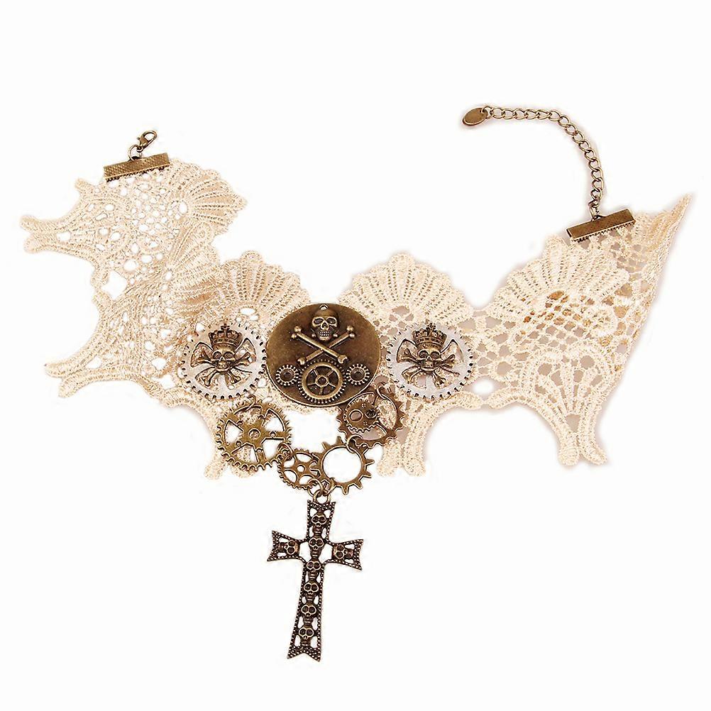 Choker Necklace Elegant Retro Steampunk Gear Skeleton Skull Design Coffee Color 1Set