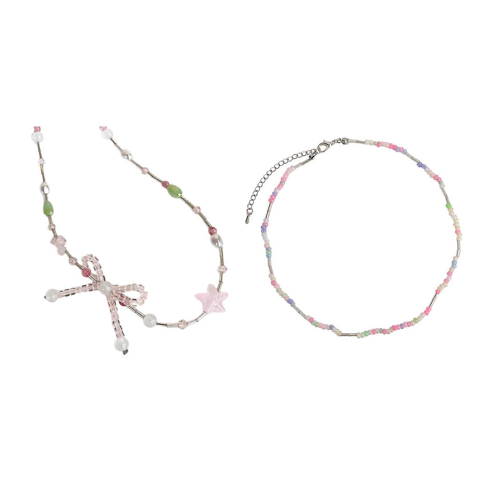 Bowknot Beaded Choker Colorful Beaded Necklaces Bowknot Necklace Artificial Crystal Material Gift for Girls Children