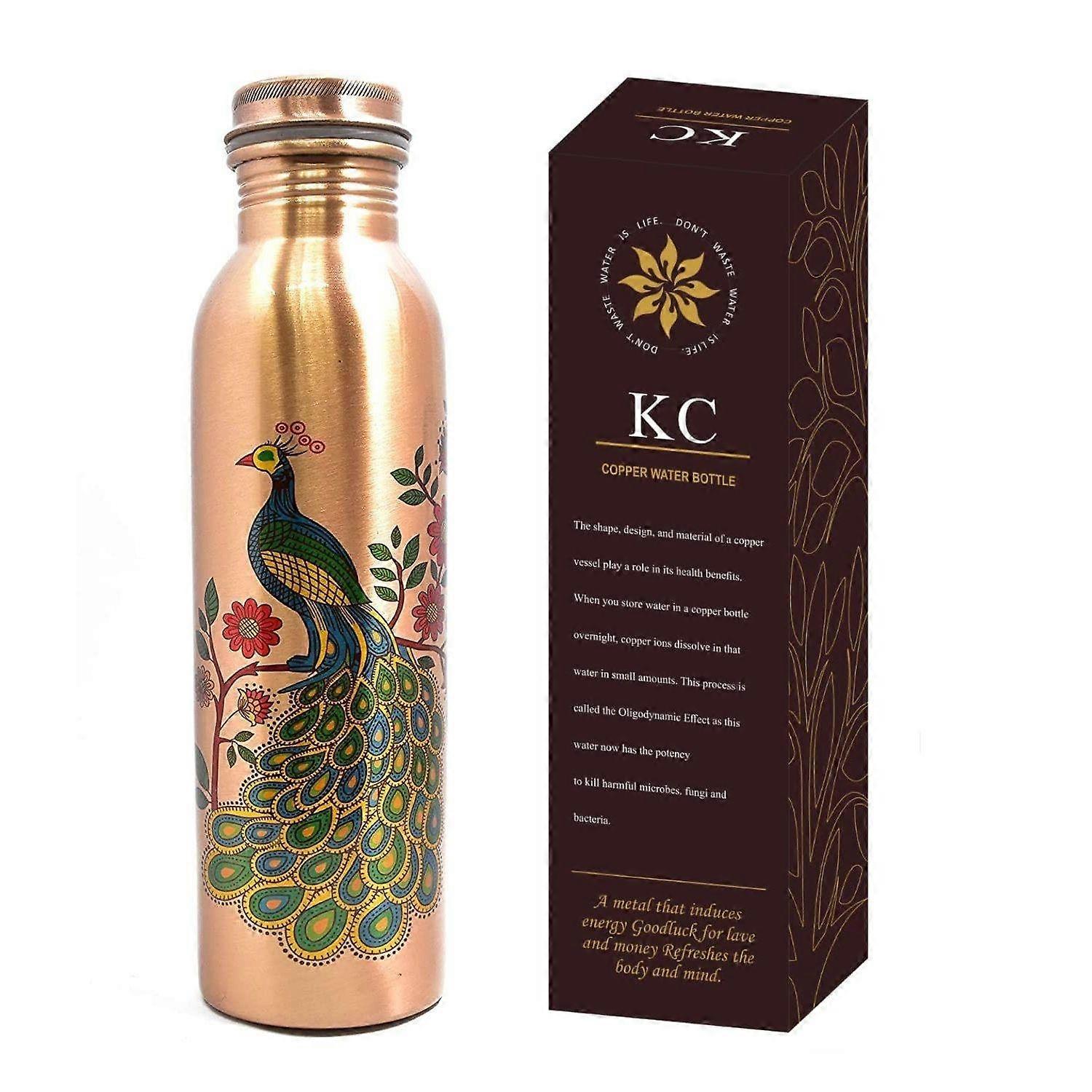 Pure Copper Peacock Designer Water Bottle with Advanced Leak Proof Protection, Ayurveda and Yoga Health Benefits. (1000ml, 1Unit, Pack of 1)