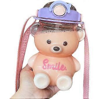 Garrafa de água de urso com palha, jarra de água à prova de vazamento kawaii com alça de ombro ajustável para viagem de acampamento