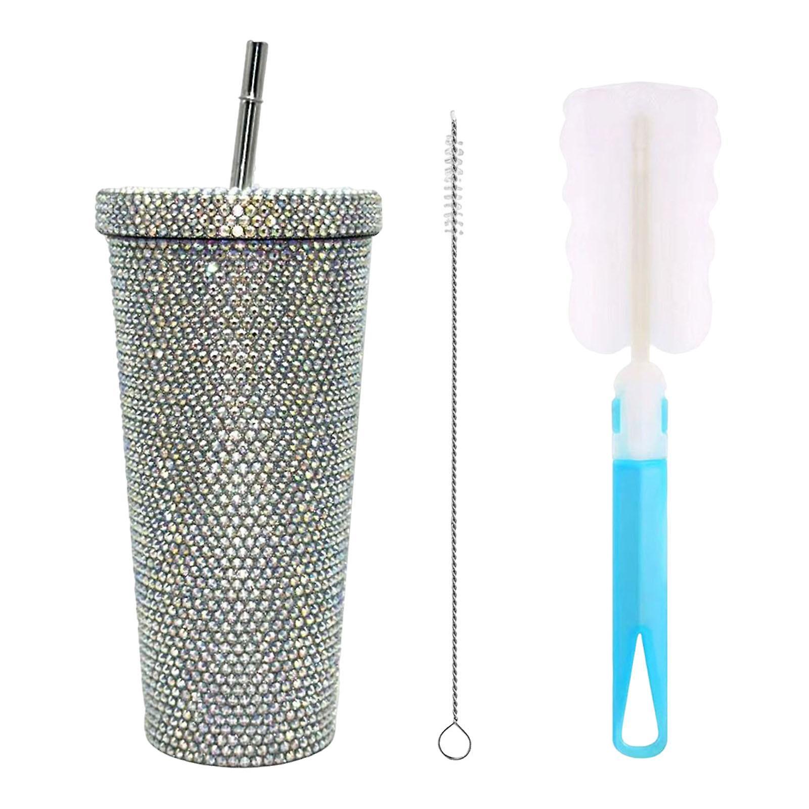 Water Bottle Stainless Steel with Cup Brush with Lid Straw Cup Bling Tumbler AB