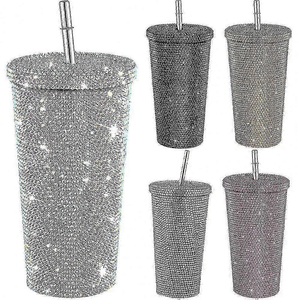 Reusable 500ml Stainless Steel Insulated Water Bottle with Straw & Lid, Rhinestone Glitter Cup Gift for Women