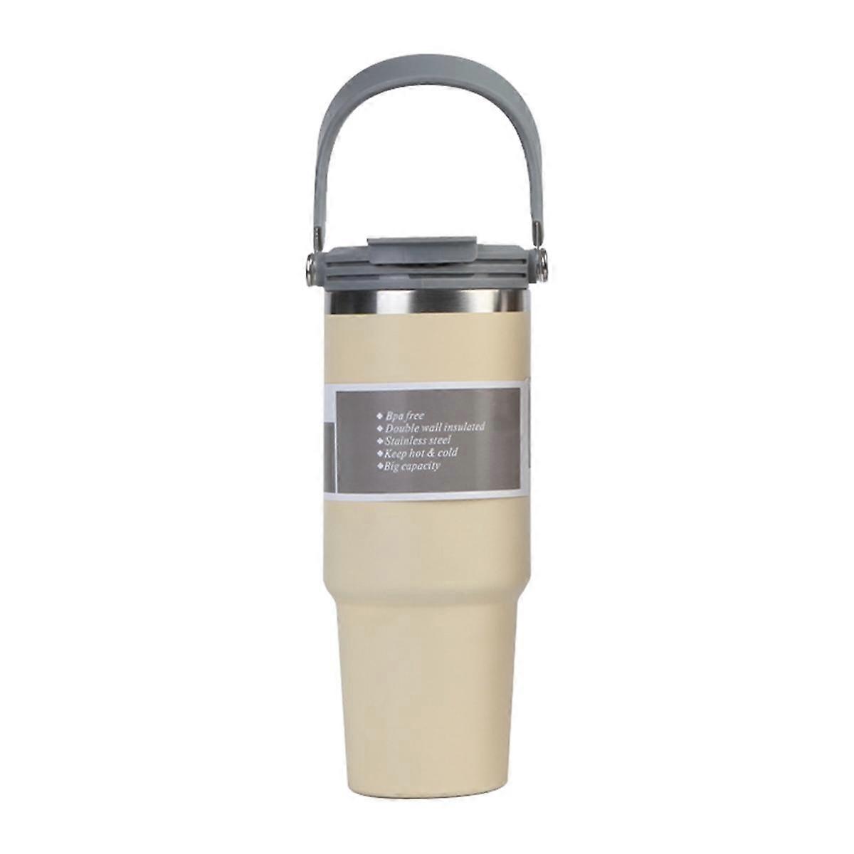30 Oz Vacuum Insulated Bottle with Handle and Flip Straw Double Wall Stainless Steel Coffee Cup Tra