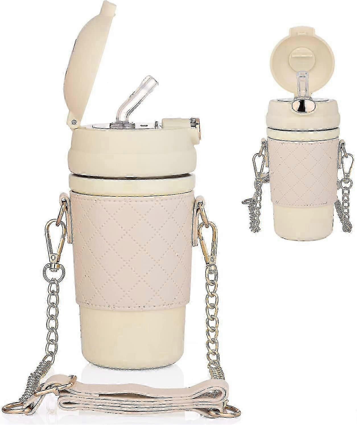 2025 Insulated Water Bottle With Straw, Stainless Steel Thermos Bottle Sleeve & Carrying Strap,16oz/480ml (beige): way