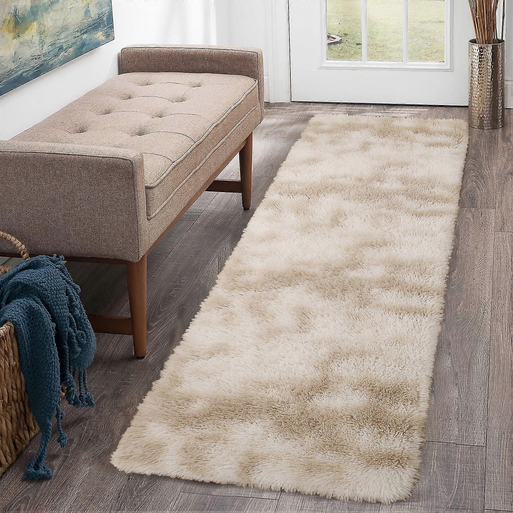 Garvee 2' x 6' Fluffy Runner Rug Soft Shag Plush Area Rug Carpet Non-Slip Fuzzy Bedside Rug for Nursery Dorm Hallway Home Decor, Light Brown