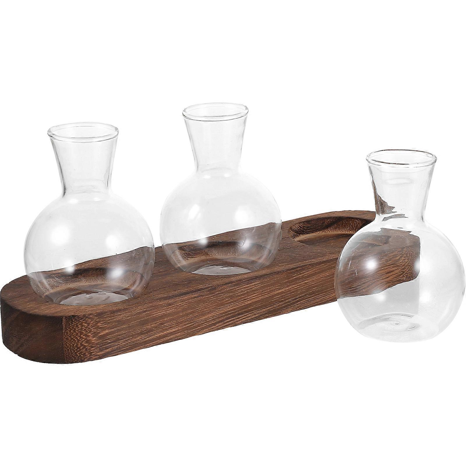 Glass Flower Vase for Home 3Sets Desktop Planter with Wooden Base Decoration