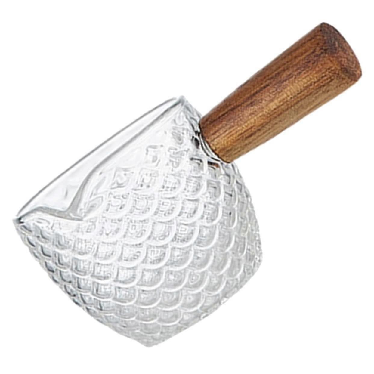 Glass Milk Pitcher With Wooden Handle, Fish Scale Texture, Latte Milk Container, Multiuse Coffee Creamer Carafe