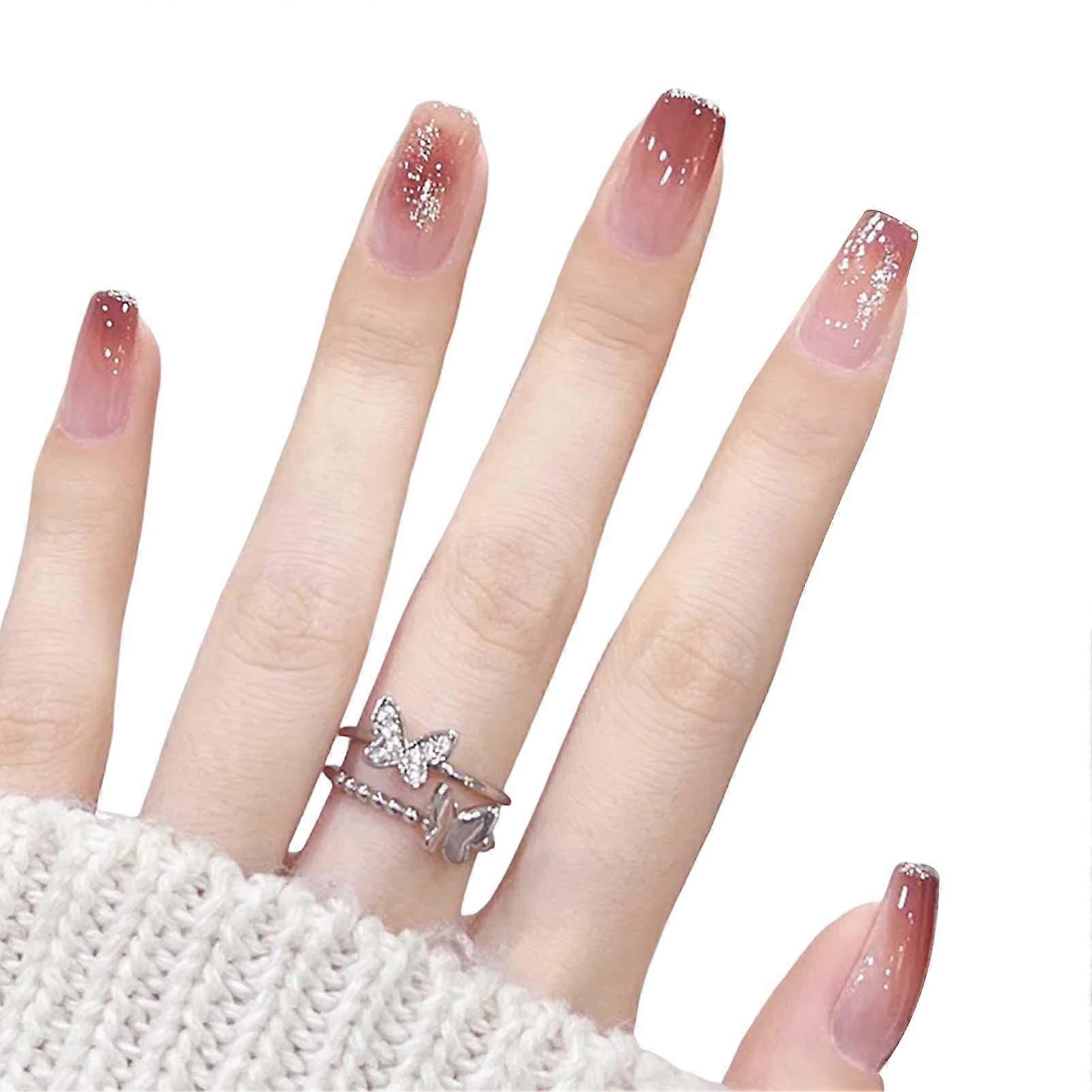 Features: Glitter Gradient Nude Press on Nails: Achieve stunning nail art effortlessly with these Glitter Gradient Nude Press on Nails. The perfect combination of glitter and nude shades creates a mesmerizing gradient effect, adding a touch of glamour to your fingertips. Luxurious False Nails Glossy Fake Nails: Indulge in the luxurious of these Glossy Fake Nails. Made with quality materials, these false nails offer a glossy finish that mimics the look of professionally done manicures. Enhance your style and confidence with these luxurious nails. Gradient Nude Glossy Stick on Nails: Get a salon-worthy manicure at home with these Gradient Nude Glossy Stick on Nails. The gradient design effortlessly blends nude shades for a sophisticated and elegant look. These stick-on nails are easy to apply and provide a long-lasting, glossy finish. Short Square Fake Nails with Glitter Sequins Design: Add a touch of sparkle to your nails with these Short Square Fake Nails featuring a Glitter Sequins Design. The square shape offers a trendy and chic look, while the glitter sequins create a dazzling effect. These nails are perfect for any occasion and will make your hands stand out. Glitter Elegant Stick on Nails Glue on Nails: Make a statement with these Glitter Elegant Stick on Nails, suitable for both stick-on and glue-on application. The glitter accents on these nails add a touch of elegance and glamour, making them perfect for special events or everyday wear. Achieve salon-quality nails in the comfort of your own home. Specifications: Material: Plastic Style: Sweet Note: Due to the screen lighting effect, the actual color of the product may be slightly different. Due to manual measurement, please allow size error. Include: 24*Fake Nails (with Glue)