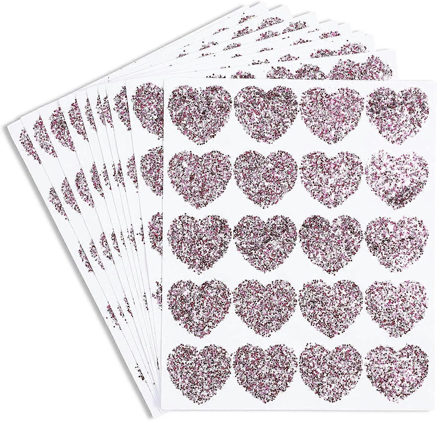 Glitter Heart Stickers, Hot Pink (1.5 Inches, 200 Pieces)