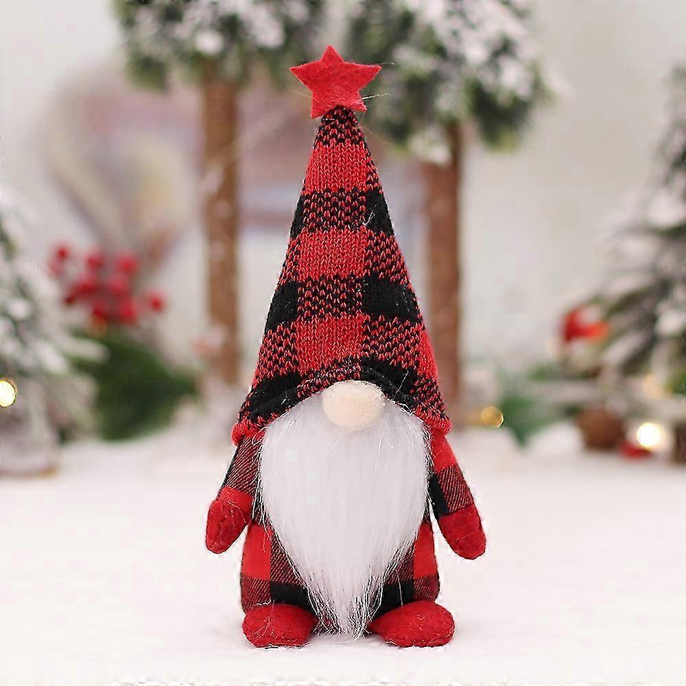 Indoor Decor Gnome Figurine with Forest Theme - 12-Inch Plaid Clad Doll