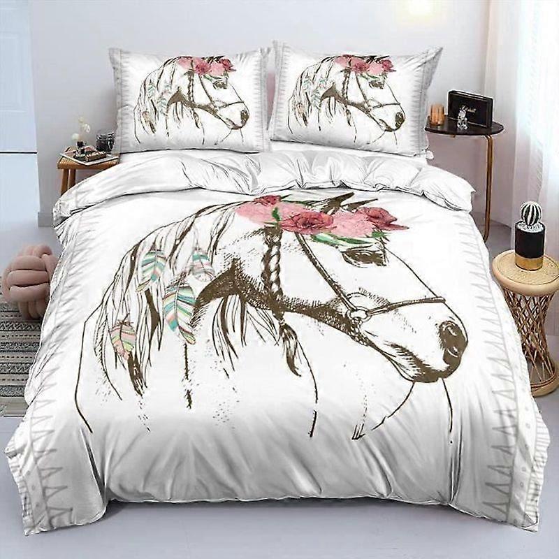 GOD12550-White Horse Duvet Cover Bedding Set with Zipper Closure Duvet Cover with Two Pillowcases 140x200 cm