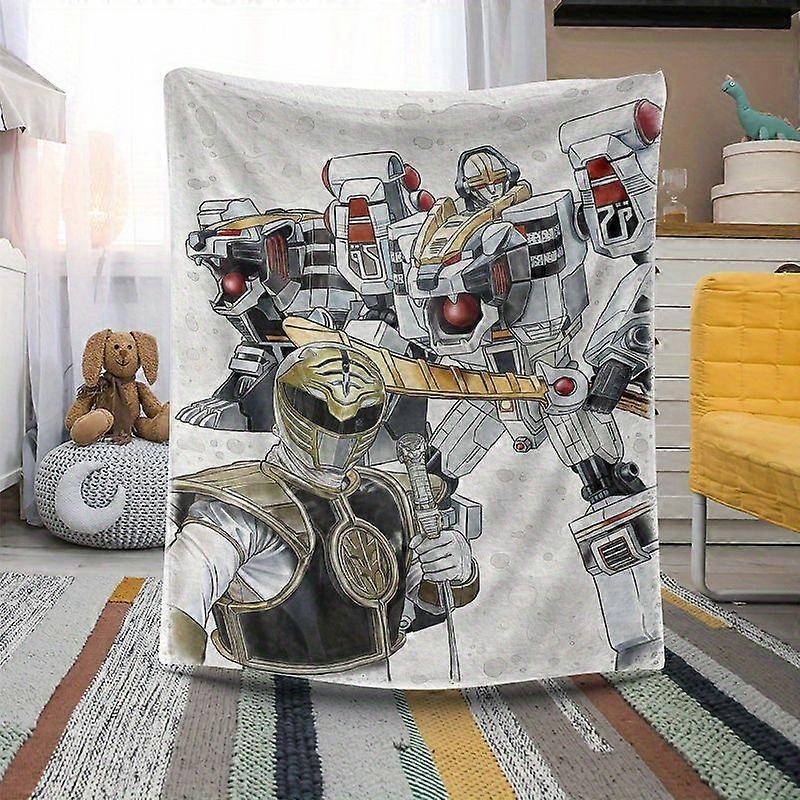 Golden Armor Warrior & Futuristic Mecha Sci-Fi Blanket - Ultra-Soft Flannel Throw with Black/White Mechanical Design - A-asdfg115