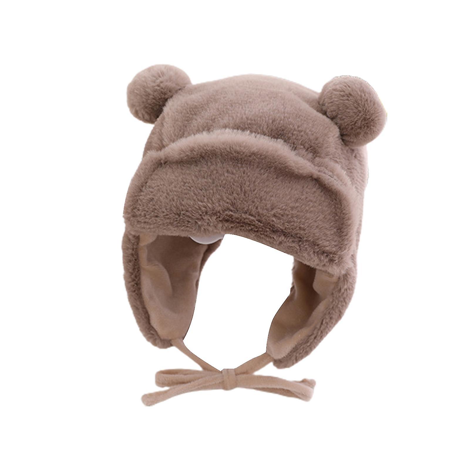 Bear Ear Decor Lace-up Solid Color Winter Beanie Cute Baby Soft Plush Ear Protection Hat Baby Accessories